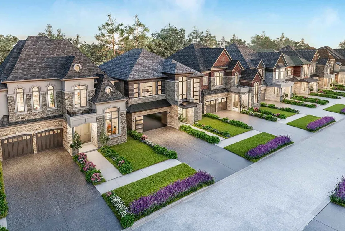 • Striking architecturally designed homes made of beautifully selected stone, clay brick, elegant stucco, prefinished accent panels, metal roofing in addition to other quality materials and detailing, as per plan and elevation.